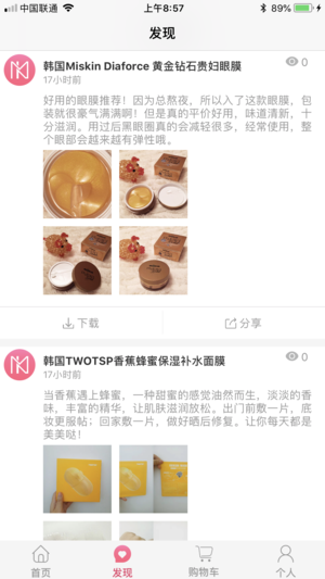 [分享互动]一键生成商品图片详情,通过微信、朋友圈分享商品,人人都是众妆美库的参与者。