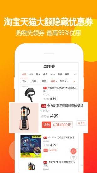 淘券联盟app与某宝某猫等一线商家合作,淘券联盟app精选大额优惠券,购物前先领券,每日上新。且淘券联盟app优惠力度巨大,商品性价比超高。