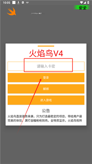 无需再面对繁琐的卡密验证程序,火焰鸟直装科技专注于玩家便捷体验。安装完成,就能即刻踏上游戏辅助之旅。无需费时寻觅与输入卡密,更不必担忧卡密过期或出错,真正实现即装即用,把更多时间投入到精彩刺激的游戏之中。