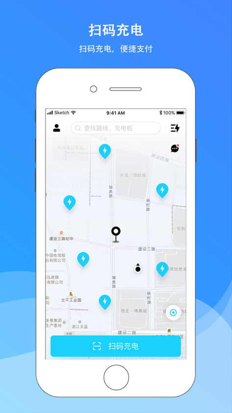 充电站搜索输入关键字搜索充电站、查看收藏的充电站、定位附近的充电站,可以快速方便的找到需要的充电站