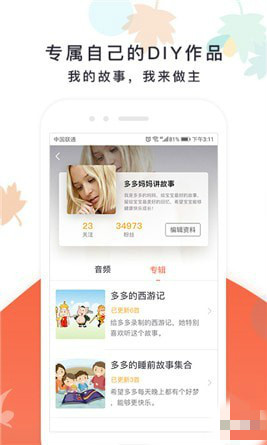 1、安抚音乐:优选了轻音乐、胎教音乐、儿童白噪音,帮助准妈妈更好的安胎,放飞心情;2、精品选送:艾儿嘟嘟汇集了大量的电台主播,人工优选优质有声儿童故事,父母有更多的选择性,为孩子挑选出更加适合自己宝宝的童话故事,绘本故事;