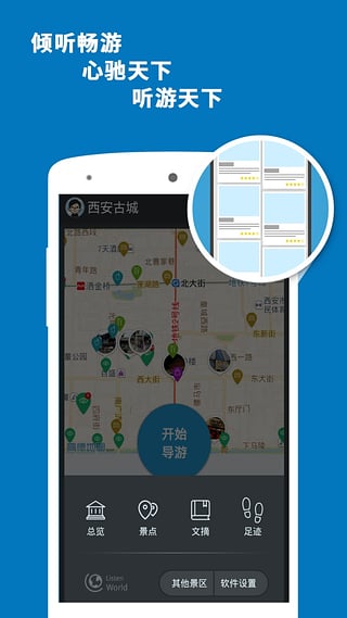 听游天下-西安古城导游:专业的智能语音导游系统,专门为喜欢自由行的旅行爱好者而设计。西安古城导游是将语音导游、门票信息、旅游攻略、景点美图、旅游足迹等全面集中展现。