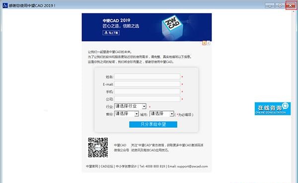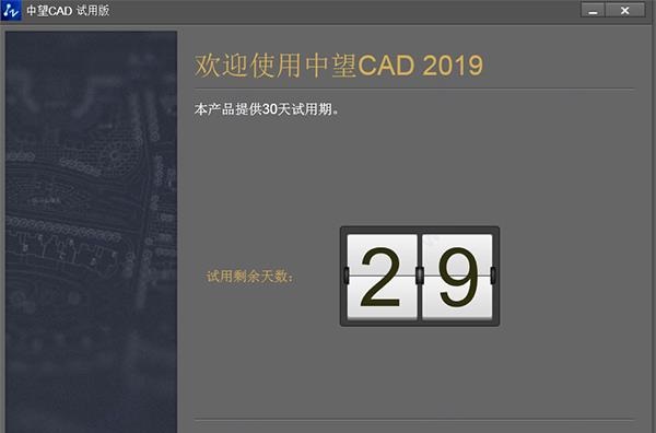 5、这里软件提示中望cad2019试用或者激活,用户可以先试用30天无任何功能限制。