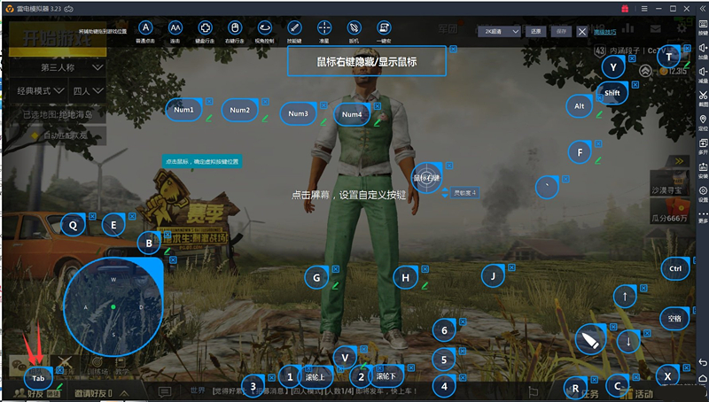 雷电模拟器玩刺激战场怎么设置首先,先打开右边工具栏“按键操作”,选择箭头“下拉选择”在选在“右键开镜”记住ctrl是隐藏鼠标。载具模式请选择第二个,在开车时,按键不管用的情况下,是因为载具模式没选择第二种。