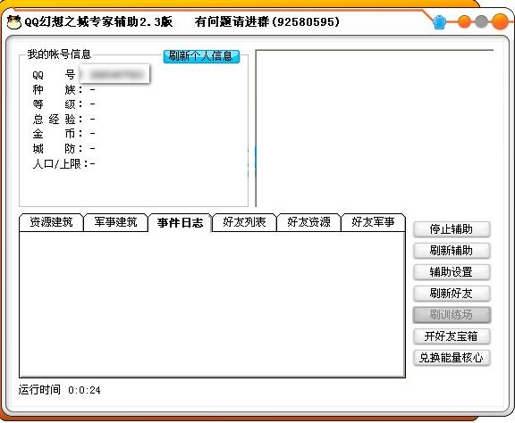QQ幻想之城专家辅助 V2.3 简体中文绿色免费版 qq幻想之城是一款由腾讯开发的q版社区游戏,以多种族经营发展丰富战斗和社交互动为主导的sns游戏。由玩家控制一片领地,并发展、扩张自己的领地。幻想 之城游戏具有多种族故事剧情.幻想之城更注重游戏内容的完整性以及可供玩家更多的操作模式,qq空间也可以添加此应用。qq幻想之城辅助专家功能介绍如下: 1自动采集资源。2自动训练兵种。支持3个种族。更多辅助功能敬请期待