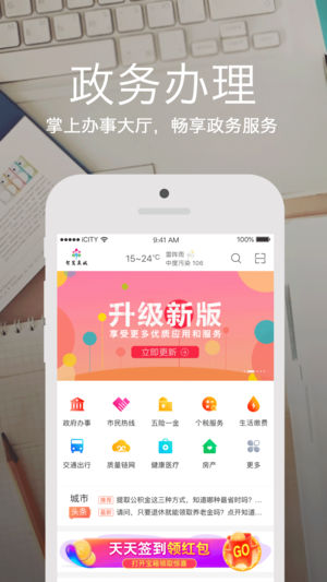 爱城市网app各个政务单位分散的服务资源和服务渠道,提供统一的“城市便民服务”入口,为百姓提供市民热线在线的咨询、投诉服务以及办事指南查询服务,以及各类政务在线办事、在线预约排队;在社保、住房、公积金、教育、医疗、交通等方面提供查询、验证、预约、推送等服务;公共事业方面,提供水、电、燃气费查询缴费服务和多种渠道支付方式,同时接入各类第三方智慧应用,让更多市民便捷地享受到智慧城市建设成果。