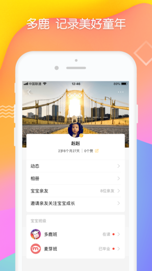 多鹿是一款亲友共同记录宝宝成长美好瞬间的社交App。 家长和亲友可以随时记录宝宝的点滴瞬间,并不受时空阻隔地与千里之外的其他亲友分享、了解宝宝成长的每个进步、每次欢欣。