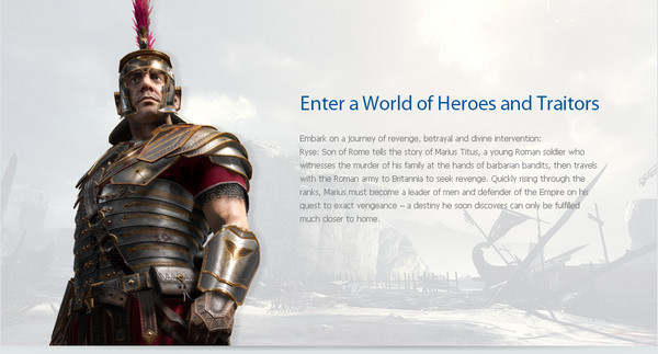 《Ryse:罗马之子》是以罗马帝国为背景的动作冒险游戏,游戏中玩家将化身罗马将领马略提图斯(Marius Titus),为了替家族的死亡复仇而投身军旅,率领罗马战士展开一场又一场的生死之战。游戏讲述了Marius Titus,一位年轻的罗马士兵,必须向杀害了他家人的野蛮强盗亲手复仇。他在罗马军队中不断升阶,Marius对复仇的追寻把他带到了大不列颠附近野蛮人出现的海岸,而最终他径直进入了罗马的心脏。