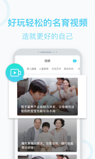 小窍门、育儿健康、儿童教育、变美、美食、理财,打造精品视频,让爸爸妈妈足不出户便可以和相关孕育专家、育儿达人学习。