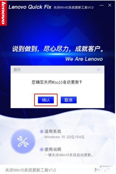 弹出“您确定关闭Win10自动更新?”的提示,选择“确认”按钮,继续,如图: