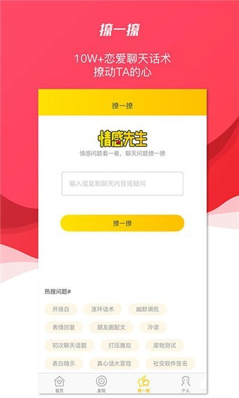 情感先生软件核心功能:撩一撩:海量恋爱聊天话术,给你源源不断的聊天话题,拒绝冷场