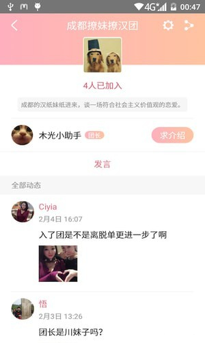 在单身团中,你可以记录单身生活的一点一滴,也可以加入有兴趣的单身团,和其他的单身小伙伴一起玩耍、脱单。