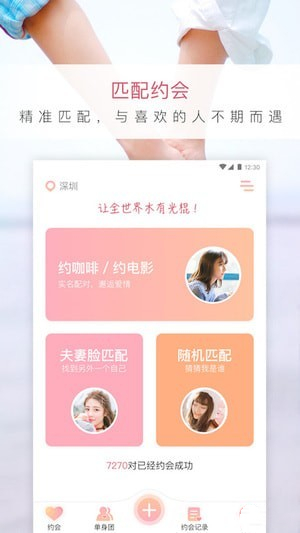 你就近选择一家温馨的咖啡馆\电影院,小约会软件根据你的理想对象要求,匹配合适异性,双方同意后即可准时赴约。线下见面才是真正的了解,让社会回归真实。