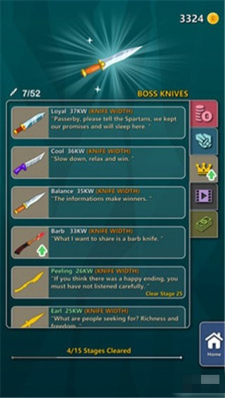 拍摄或扔刀以击中原木并将其分解成碎片。用你的刀来打败敌人。你砍的越多,你就可以得到越多的刀。每5个阶段击中老板,获得有价值的刀具!