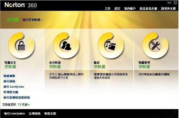 诺顿360是赛门铁克最新推出的个人安全防护软体,产品本身除了具备系统防毒、邮件扫描、个人防火墙、入侵侦测防御、钓鱼网站防护以及间谍程序过滤等基本的安全控管机制外,也考量到使用者的实际需求,一并将效能调校与档案备份纳入其中。