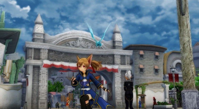 说到ALO,那自然就会想到飞行。没错,本作中玩家可以360度自由飞行,这也是新作最大的特征。而战斗方式也在前作地面战的基础上增加了空中 战,两者之间可以无缝切换。不过在迷宫中玩家无法飞行,只能进行地面战,从公开的画面中能看到这次在地面战中可以进行跳跃的动作了。