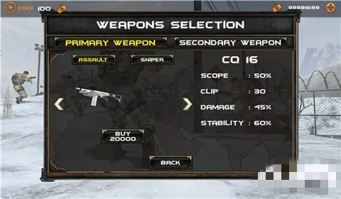 它有令人惊奇的3D图像,用于战斗和火炮的选择,选择M1911,MPS,AK47,M4,短枪,狙击步枪等等。