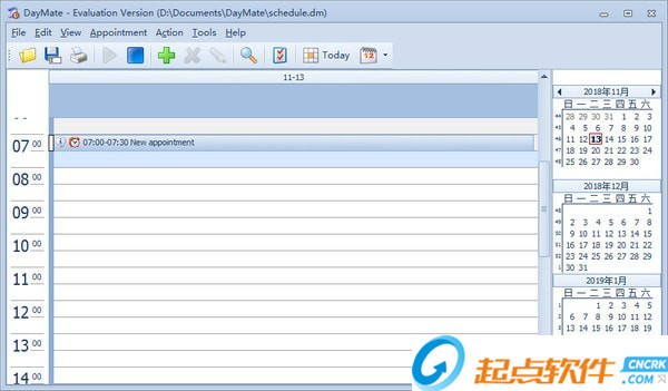 1、DayMate官方版是一款好用的日程管理软件,允许你和你的任务任命,DayMate包括选择与择定催警报和/或电子邮件通知,可以帮你记住纪念日即将到来,生日、会议及其他重要活动。2、你可以透过戒备DayMate弹起讯息(午觉期权),警报声和电子邮件讯息。除了报警与提醒,还可以表演节目部分路由计算任务一样展开网站 检查你的电子邮件后,同步你电脑系统时间或关停你在指定时间或时间表。