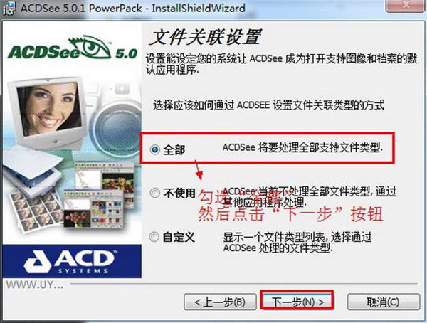 ACDSee5.0的用户信息自己随意填写即可 ACDSee5.0的许可证号(序列号)“664-828-790-472-030-541”这个需要我们手动输入 然后点击“下一步”按钮继续操作。