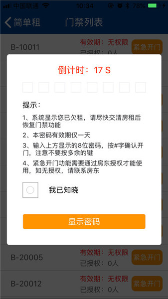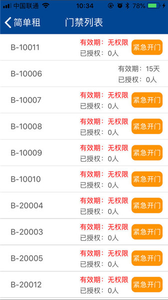 2、租客可使用App进行蓝牙开门,开门记录,授权他人开门