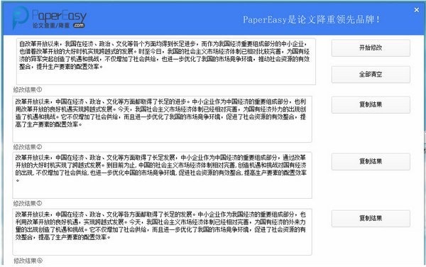 PaperEasy论文修改助手使用操作简单,一键修改,没有复杂的操作,下载立刻使用,绿色支持免费试用。大学生修改降低论文重复率的神器!