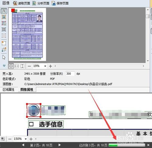 这里加载了一个pdf文件,如图1,打开后即可自动识别,图中箭头处可显示进度,等其全部完成,如下图2会有结果提示,关闭即可。