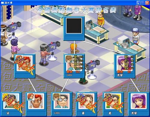 按左上角的一个按钮,把店的平面图弄出来,在把鼠标放到面包架上,直接点右键,然后设置要卖的面包这样师傅就会做面包啦。