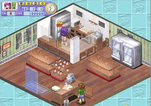 开始游戏后,按上方第二个按钮(蛋糕屋的各项设定),然后在展示架上按右键,设定要卖的蛋糕,