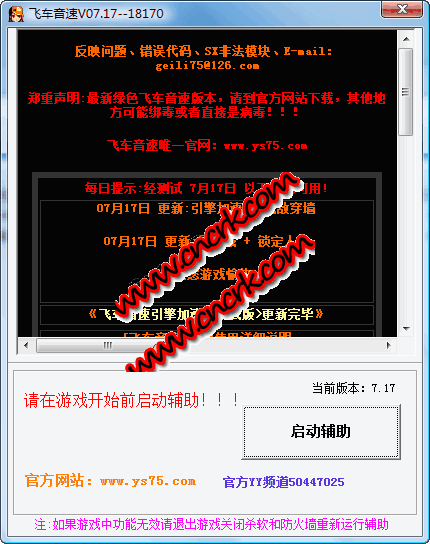 飞车音速加速辅助帮助你更好的体验QQ飞车的乐趣,使用时先打开工具,选择游戏所在目录,然后再登陆QQ飞车,开启辅助工具即可,该工具可以穿透防火墙,所以无需关闭,适合网吧使用。