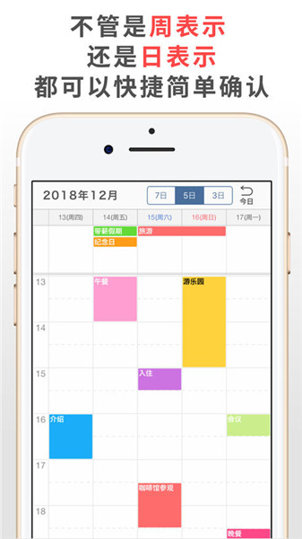并且,以周为单位的日历可以以7日、5日、3日切换表示,选择自己方便的查看方式。