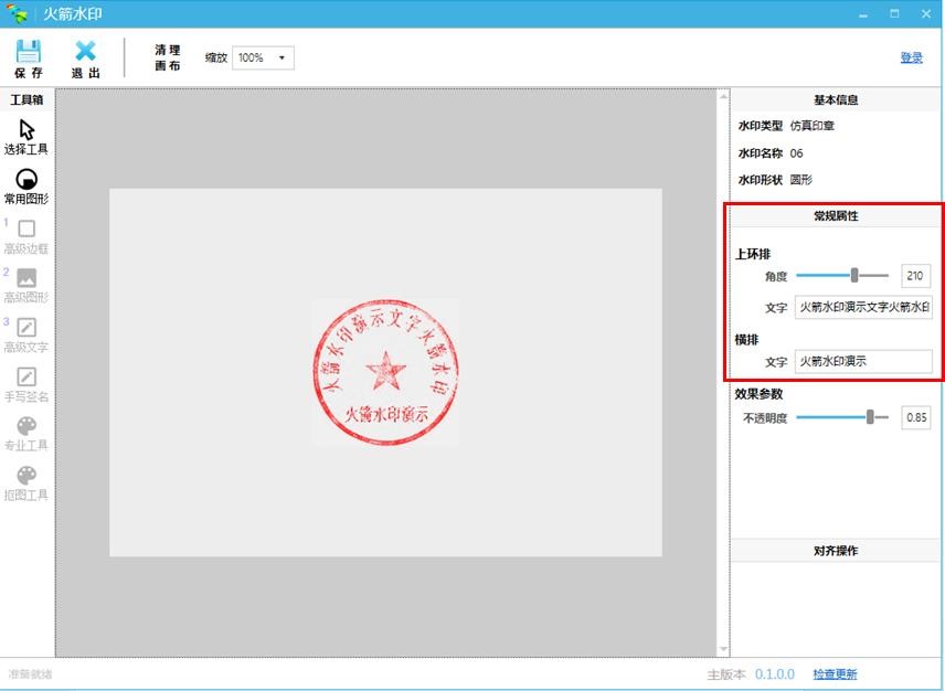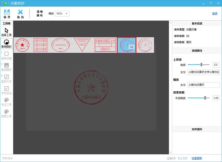 火箭水印免费版印章制作,电子印章签盖,个人印章设计全部采用傻瓜式操作。界面简单,操作方便。让你从此告别复杂设计和操作。并且还免费哦!还在等什么,快来下载使用吧。