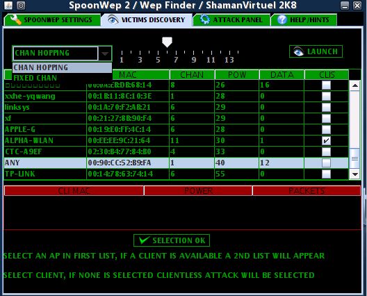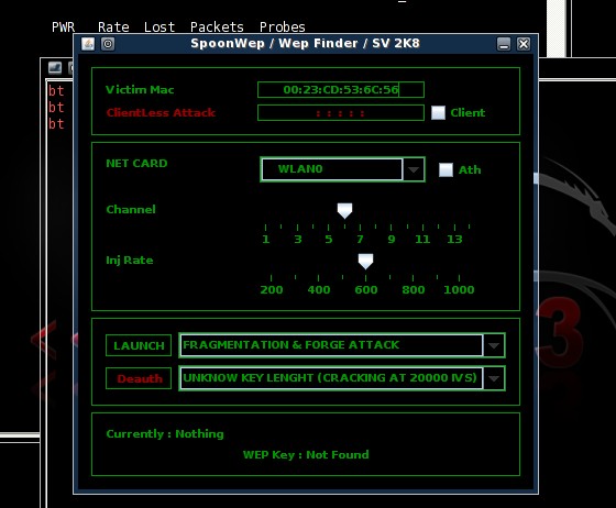 4、可以方便的破解无线网络,其中内置的spoonwep是一个非常强悍的图形化破解WEP无线网络密码的工