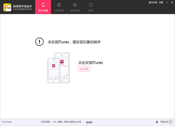 使用前需要安装iTunes软件。躺倒鸭手机铃声设置教程:如何使用躺倒鸭苹果助手导入铃声