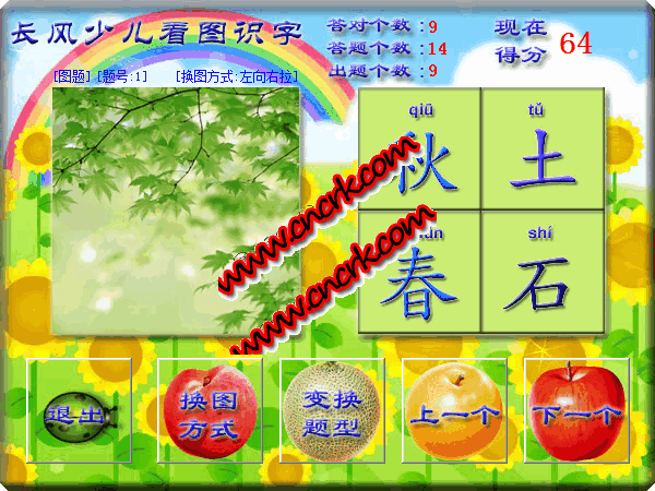 长风少儿看图识字 V3.0 官方安装版 长风少儿看图识字软件为长风少儿认知系列软件之一,长风少儿认知系列软件的设计思想就是,通过简单的操作,实现多样的功能,软件采用精美的版面和水果按纽以及图文声三位一体的方式,软件内置多种图片切换特效,以及题型和类型的变换,以更多的满足了孩子的求新求异欲,也使认知过程不再单调,同时提高了孩子的学习兴趣。让孩子乐而忘返,让孩子能快速记忆。