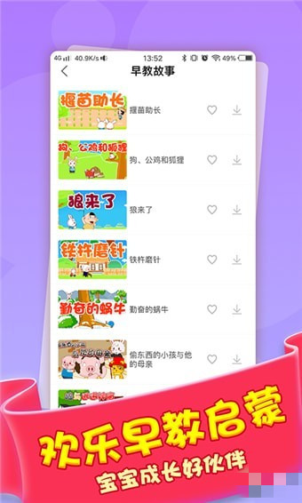 多多故事app,精选海量儿歌、故事、动画、国学、英语、绘本故事等优质内容!多多故事app汇聚各类生动有趣的动画,儿童故事,英文启蒙,儿歌童谣,世界童话,早教启蒙故事,唐诗宋词,成语故事,三字经等,让宝宝在儿歌故事和动画中,培养好习惯,好性格,提升宝宝各项能力。