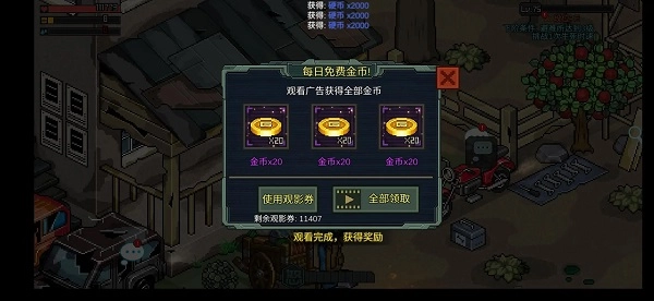 玩家每日通过观看广告,能够获取400发手枪子弹、400发步枪子弹以及200支箭矢,这是一种获取物资的有效方式。