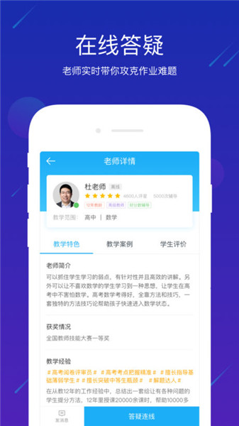 好分数辅导app是一个创新性的远程教育产品,在好分数辅导app上有着来自黄冈在职教师、清华大学生等,为你实时解答做作业上的疑难问题,实时在线互动。有了好分数辅导app作业问题日日清,学习轻松无负担!