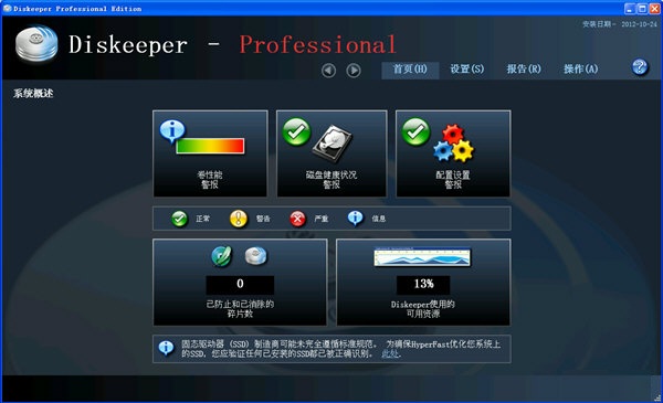 3、Diskeeper 12 Professional包含了HyperFast®固态驱动器优化工具。HyperFast是专门为SSD硬盘服务的,旨在保持SSD笔记本电脑、台式电脑和上网本以最高速度运行,同时延长固态驱动器的使用寿命 。