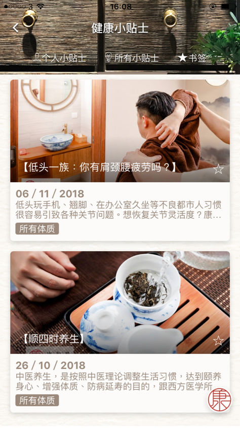 健康小贴士: 养生是生活的一部份,我们定期为你送上适合你体质需要的健康小贴士,健康养生从此变得简单