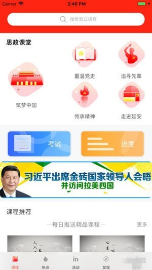 小红专app内容包括“走近延安”、“重温党史”等五大版块,按照每日一课的方式向在校大学生推送。