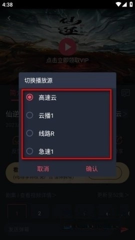 2、紧接着会弹出名为“切换播放源”的框体,在其中选择其他播放源,点击“确认”,如此便可解决播放方面的问题。
