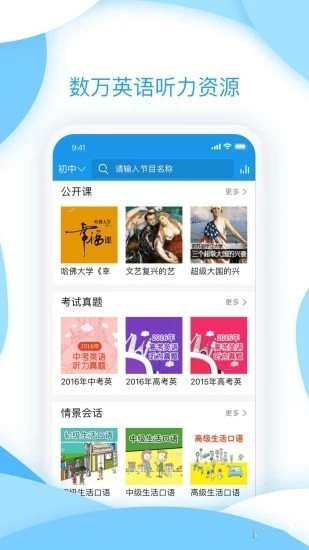 1、海量内容:1000优质英语节目,语音同步双语字幕,超过10万篇有声资源;2、离线收听:离线收听节省流量,高速批量无限下载,便于随时随地学英语;