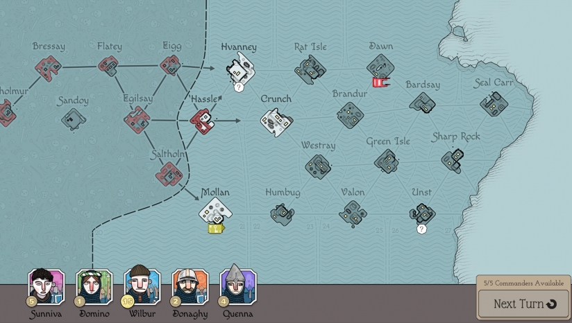 很难确定欺骗性质是否是这一点的一部分,或者伤害最初看起来像是一种令人愉快的,悠闲的战略体验。你会仔细但轻松地回应迎面而来的攻击者 - 这是对更苛刻的策略游戏的一个不错的选择。然而,所有这一切都只有一个错误。失败的后果与悠闲的战斗速度不一致。有一个随每个新游戏随机生成的战役地图,担心任务之间,你应用升级并选择下一个要解决的岛屿。根据在一个级别结束时有多少小屋存活,您可以获得更多奖励。你可以使用它们来平衡你的单位,让你专攻长枪兵或弓箭手,并选择特殊的能力,如悬崖上的潜水攻击。这一切都非常简单,但就像任务本身一样,不会犯错误。选择错误的岛屿或能力然后艰难,就是这样,没有做法。