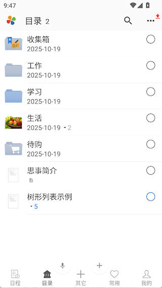 2. 树形结构管理:运用无限分层的树形列表以及可自由排序的文件夹,对复杂的计划和知识进行拆解,清晰展现层级关系,方便从整体上进行把握。