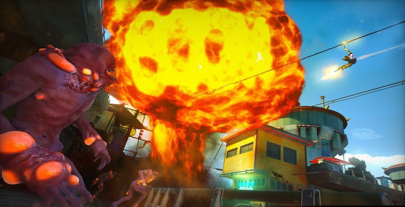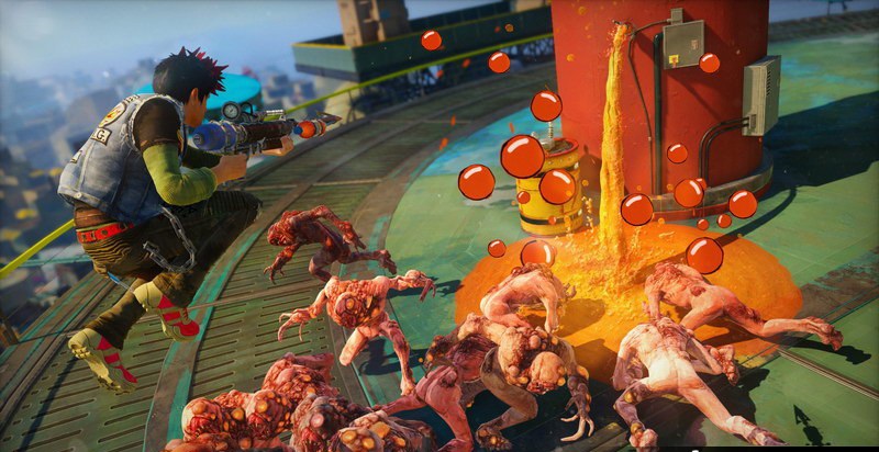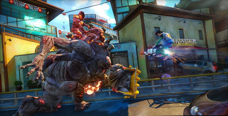 《落日超驰》故事发生在2027年,一种能量饮料引发了突变爆发,游戏中玩家只能用使用Insomniac创造的各种奇葩武器拯救世界了。Insomniac称,这款游戏他们至少构思了20年。本作将会推出首发(Day one)版,买到DAY ONE版的玩家将会得到三款独特的武器和装备奖励。【AMP系统】