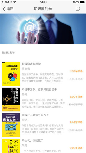 职场图书、创业指南、经典小说、优质网文,例如《梦回大秦》、《民国那些腕儿》、《了不起的盖茨比》、《卡耐基经验学》等等