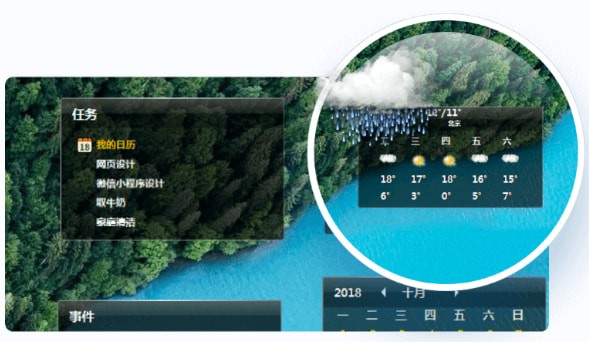 通过桌面的天气预报模块,您可以方便的掌握未来几天的天气情况,以便根据不同的天气对您的日程进行针对性的安排。