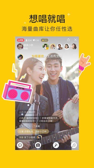 想唱就唱:音乐伴随你的直播,海量的曲库想唱就唱!