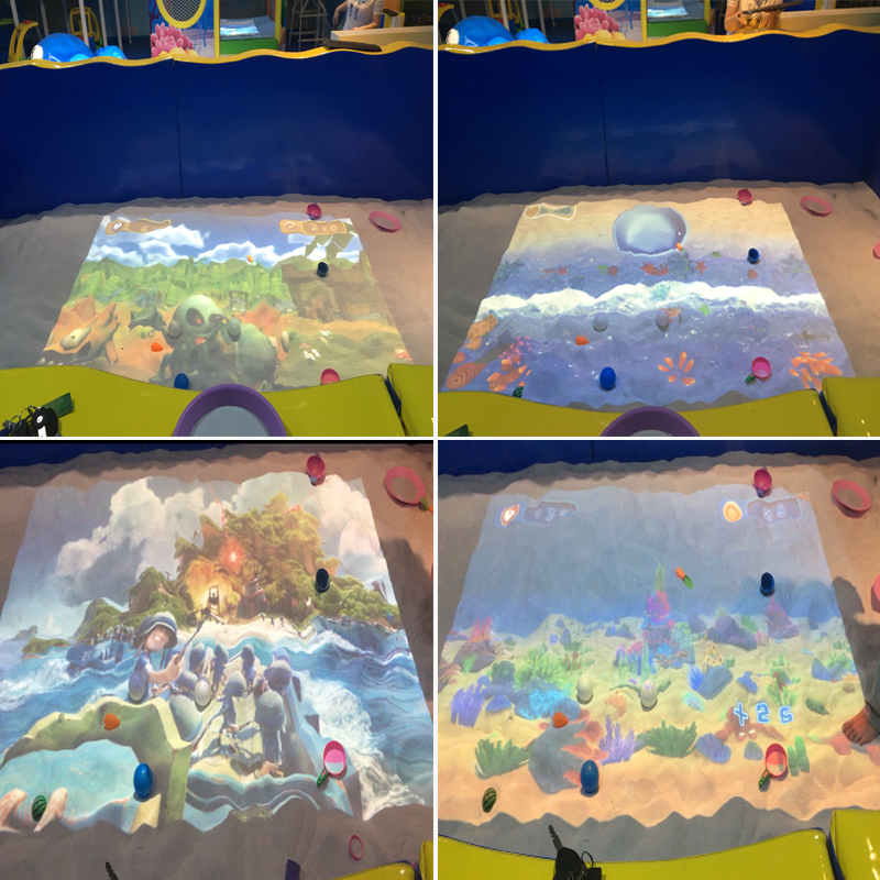 互动沙滩即可捕鱼,又可以拿盘子做为武器攻击靠近沙滩的怪物。丰富的3D游戏内容让小孩子玩不停 ,红外精准识别盘子无干扰,安装方便,无需布线,全遥控操作。小朋友置身虚拟现实的海洋场景中,沙滩边散落投影着时隐时现的海星、贝壳、海螺,还有可寄放小朋友捕捞成果的鱼缸。涛声轻柔,波光亮丽,放眼望去,一派滨海风光。小朋友们可以下海捉鱼,尽情捕捞螃蟹、鱼虾等,可以打怪兽守护村庄,打僵尸,成为捕鱼达人。只要拿着网拍,看到鱼儿即用网拍轻轻一摇便将鱼儿捕获入网,用网拍就可以进行地面打怪兽,捕获深海鱼,跟僵尸来一场大战。享受捕获游戏的乐趣。