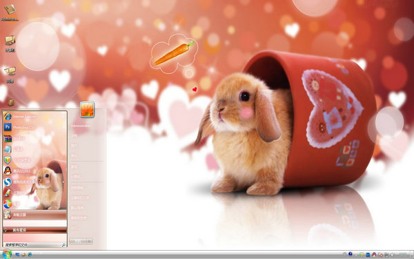 小兔之家壁纸主题,超萌的可爱小兔子,在小兔兔们的世界中,胡萝卜就是全部了,不过,他们也会很乐意来为我们带来欢乐的,这款小兔主题就是了,快把她带回家吧!~